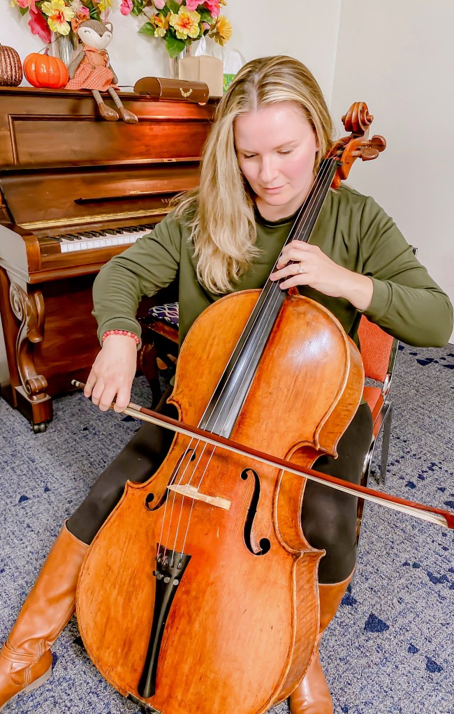 Cello lessons for adult beginners focus on making the process of learning the cello as seamless and effective as possible! Mrs. Campbell has over 20 years of teaching experience. She has her very own Cello Method Book for Beginners. The book introduces music notation and all the basic fundamentals to reading music for cello.