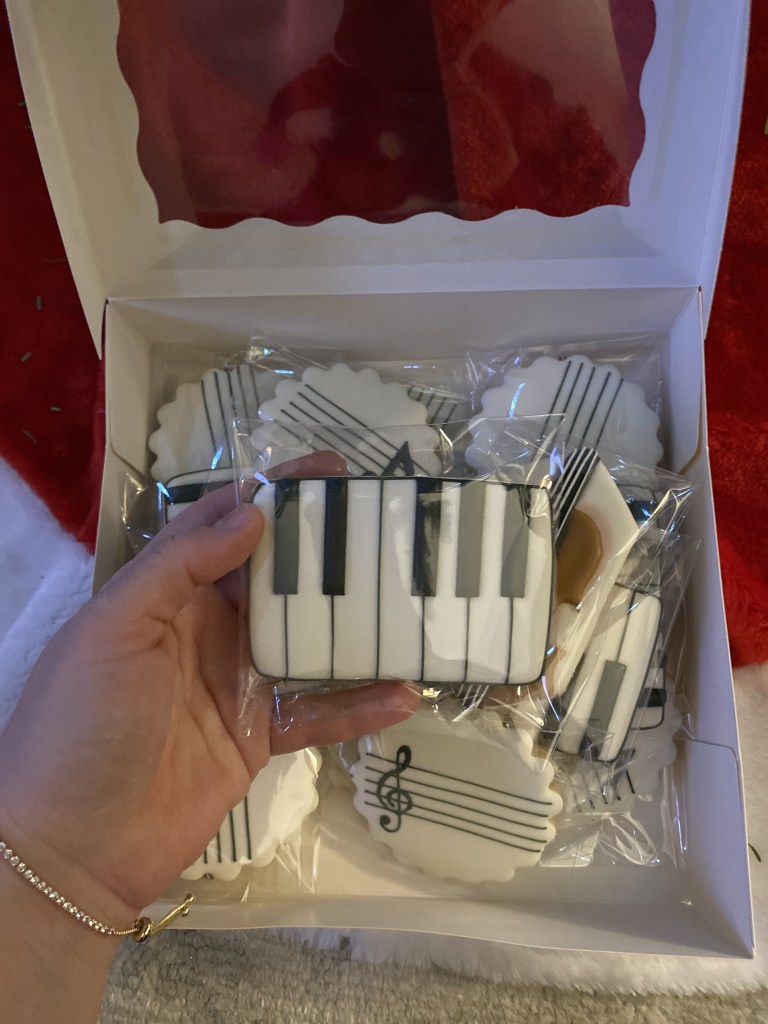 Right before the end of classes, we took a minute to receive our Accomplishment Certificates of the Term. We also received the studio Christmas gift. It was custom made music cookies made right here in Uxbridge!