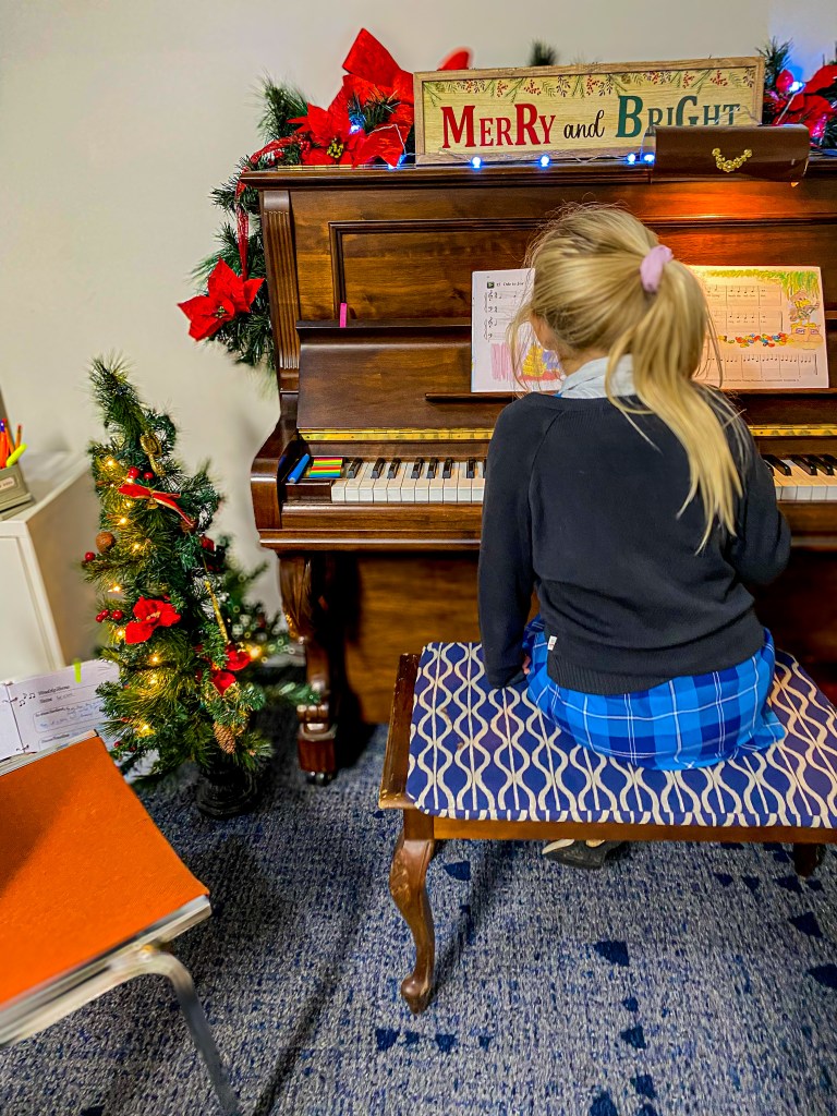 On December 16th we wrapped up the Fall Term 2024 of Piano Classes! Festive decor adorned the piano. Twinkle lights added sparkle. Of course, we had Christmas-themed piano activities. We looked back at all the songs and the music notation we learned starting from September 2024! I am so proud of my students and their hard work they put in! Congrats! 🙂