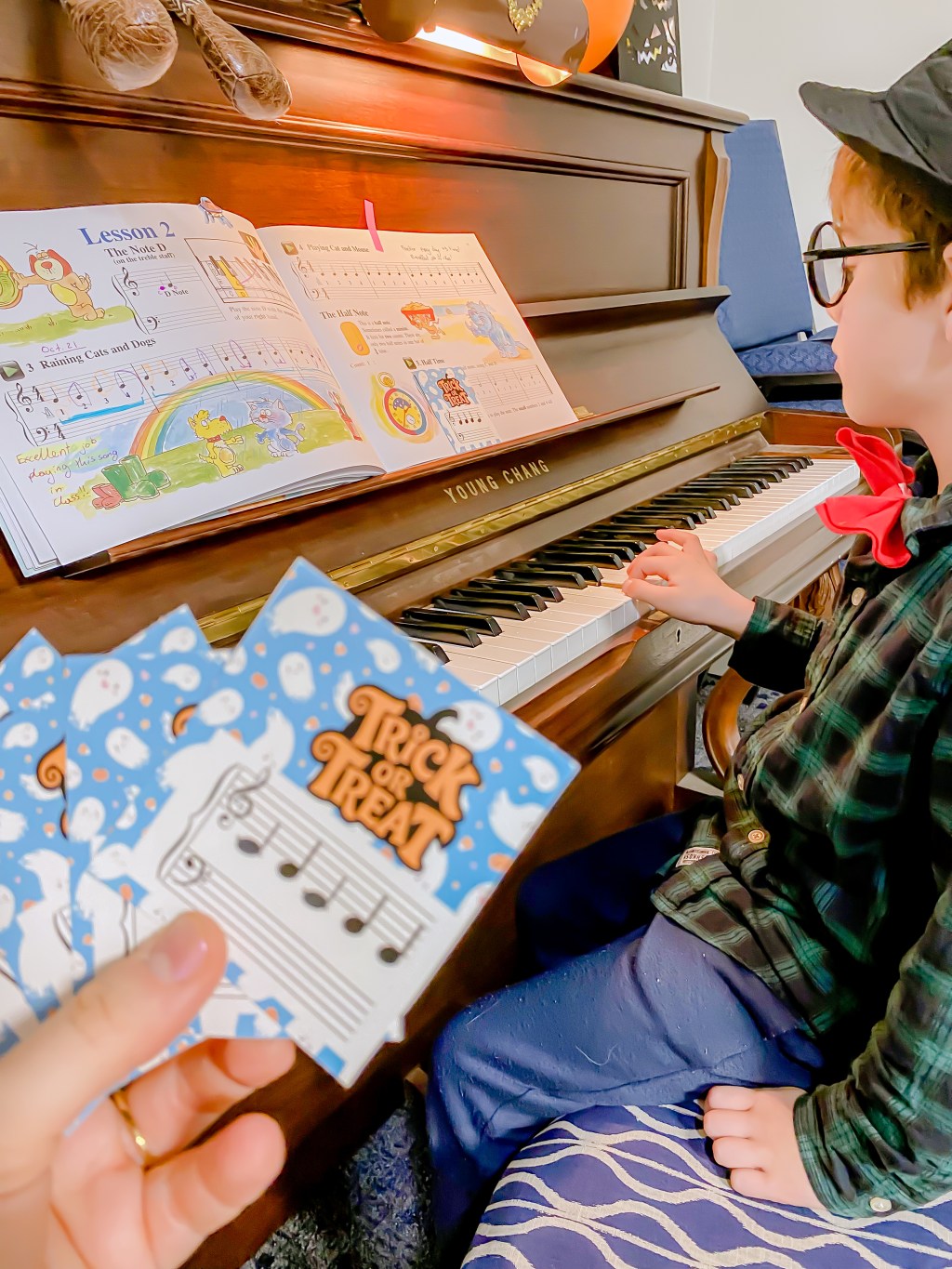 Trick or Treating 2024 started way earlier with our Studio having some fun, Halloween-inspired piano lessons! There was dress up. There were spooky songs. Of course, we included some candy-themed rhythm and notation games. These were for the piano beginners as we make our way into the first notes on the piano!